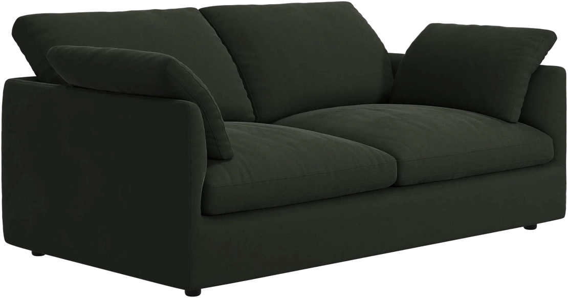 Аккуратно присборенные подушки спинки создают скульптурный и гостеприимный силуэт, который выглядит одновременно воздушным и уютным.