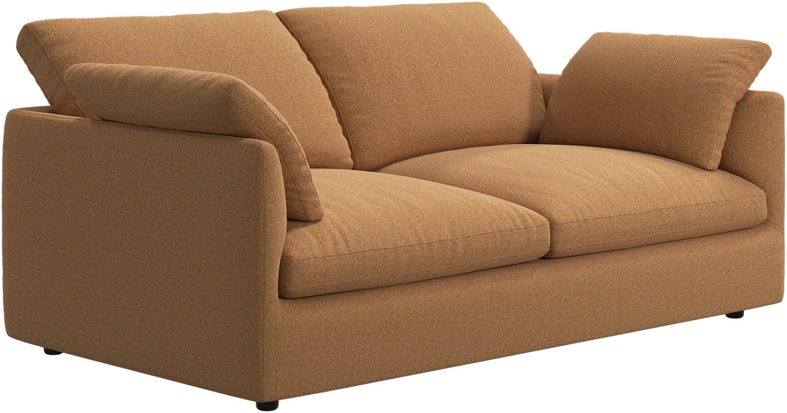 Аккуратно присборенные подушки спинки создают скульптурный и гостеприимный силуэт, который выглядит одновременно воздушным и уютным.