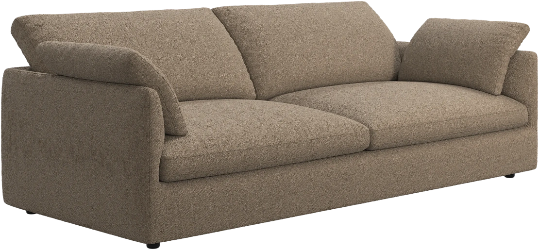 Аккуратно присборенные подушки спинки создают скульптурный и гостеприимный силуэт, который выглядит одновременно воздушным и уютным.