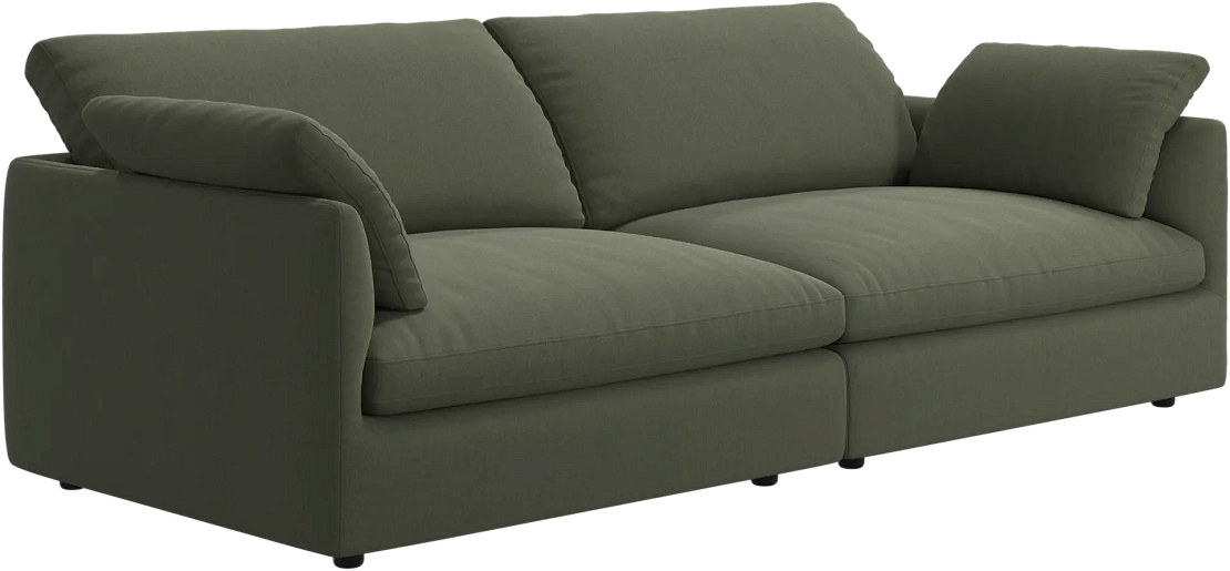 Аккуратно присборенные подушки спинки создают скульптурный и гостеприимный силуэт, который выглядит одновременно воздушным и уютным.