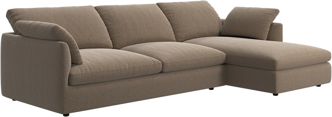 Аккуратно присборенные подушки спинки создают скульптурный и гостеприимный силуэт, который выглядит одновременно воздушным и уютным.