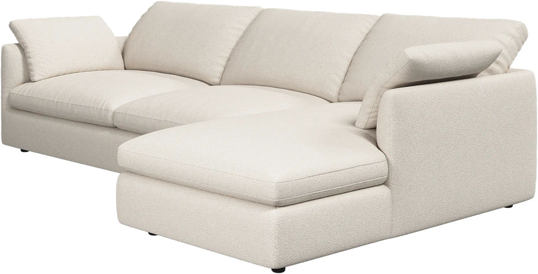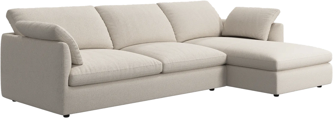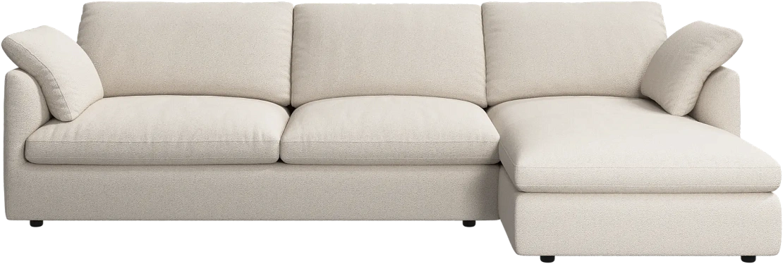 Аккуратно присборенные подушки спинки создают скульптурный и гостеприимный силуэт, который выглядит одновременно воздушным и уютным.