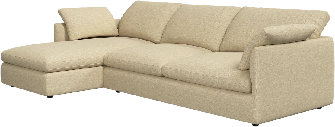Аккуратно присборенные подушки спинки создают скульптурный и гостеприимный силуэт, который выглядит одновременно воздушным и уютным.