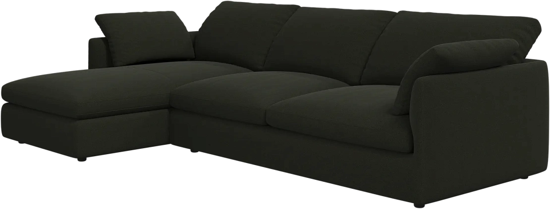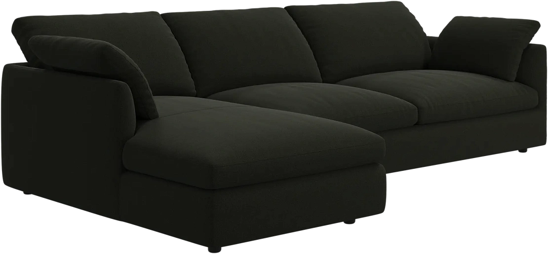 Аккуратно присборенные подушки спинки создают скульптурный и гостеприимный силуэт, который выглядит одновременно воздушным и уютным.