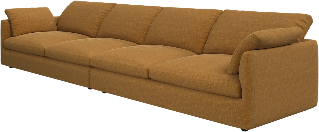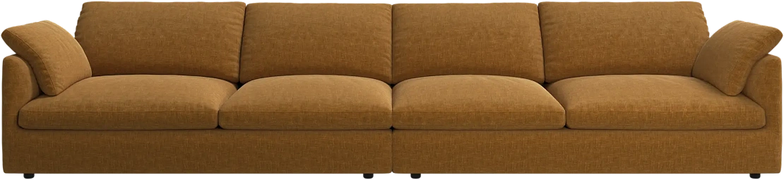 Аккуратно присборенные подушки спинки создают скульптурный и гостеприимный силуэт, который выглядит одновременно воздушным и уютным.