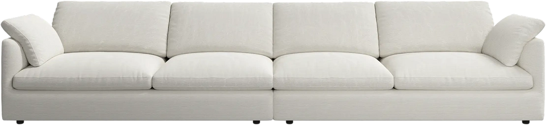 Аккуратно присборенные подушки спинки создают скульптурный и гостеприимный силуэт, который выглядит одновременно воздушным и уютным.