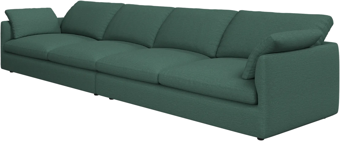 Аккуратно присборенные подушки спинки создают скульптурный и гостеприимный силуэт, который выглядит одновременно воздушным и уютным.