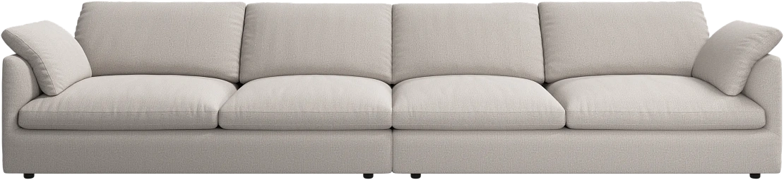 Аккуратно присборенные подушки спинки создают скульптурный и гостеприимный силуэт, который выглядит одновременно воздушным и уютным.