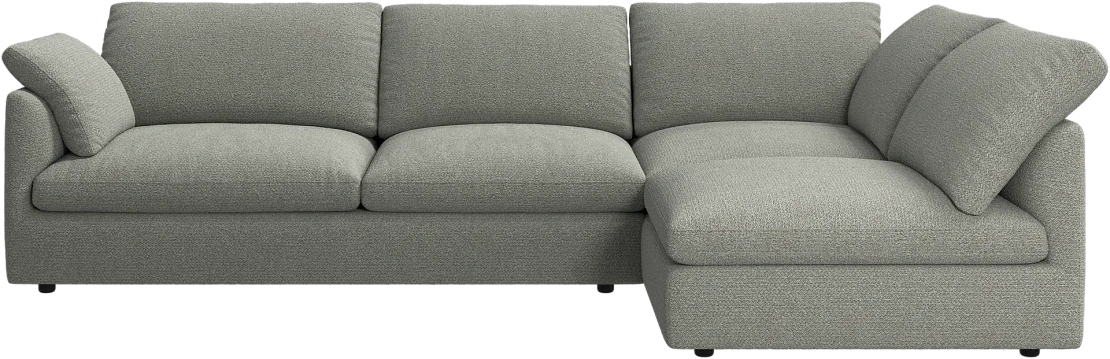 Аккуратно присборенные подушки спинки создают скульптурный и гостеприимный силуэт, который выглядит одновременно воздушным и уютным.