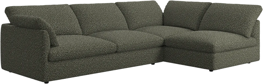 Аккуратно присборенные подушки спинки создают скульптурный и гостеприимный силуэт, который выглядит одновременно воздушным и уютным.