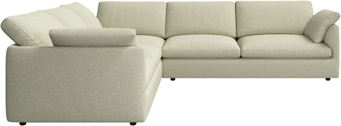 Аккуратно присборенные подушки спинки создают скульптурный и гостеприимный силуэт, который выглядит одновременно воздушным и уютным.