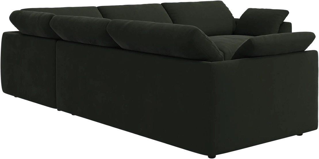 Аккуратно присборенные подушки спинки создают скульптурный и гостеприимный силуэт, который выглядит одновременно воздушным и уютным.