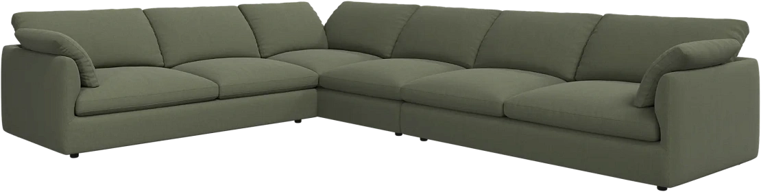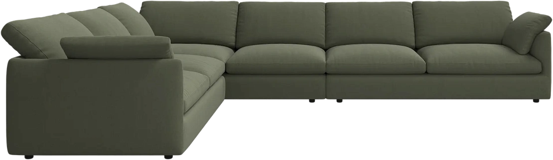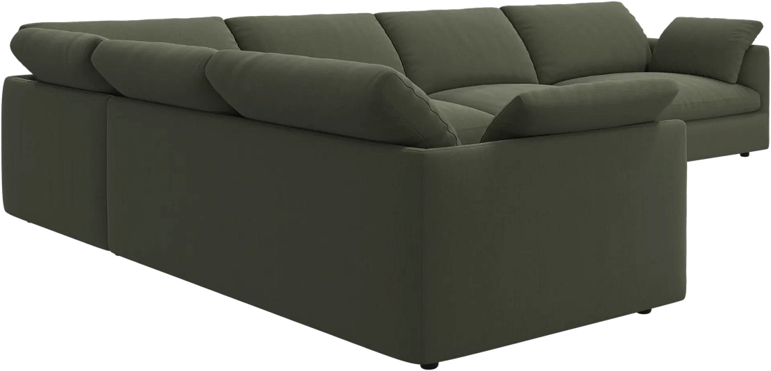 Аккуратно присборенные подушки спинки создают скульптурный и гостеприимный силуэт, который выглядит одновременно воздушным и уютным.