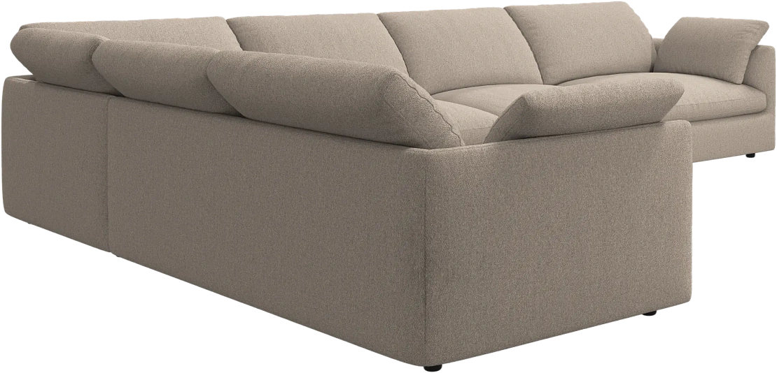 Аккуратно присборенные подушки спинки создают скульптурный и гостеприимный силуэт, который выглядит одновременно воздушным и уютным.