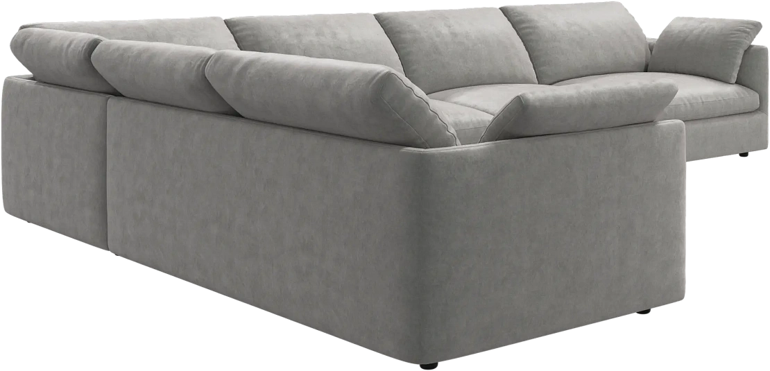 Аккуратно присборенные подушки спинки создают скульптурный и гостеприимный силуэт, который выглядит одновременно воздушным и уютным.
