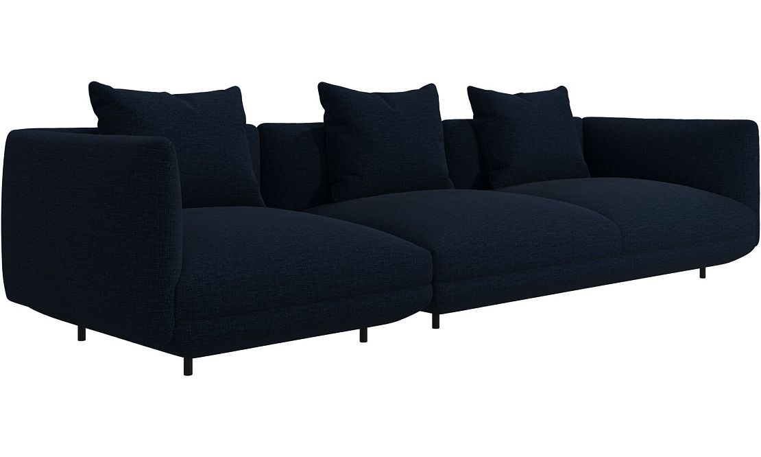 Диван Salamanca отличается щедрыми пропорциями и мягкими изгибами. Их подчеркивают тонкие, едва заметные трубчатые ножки черного цвета, создавая низкий 'парящий' силуэт.