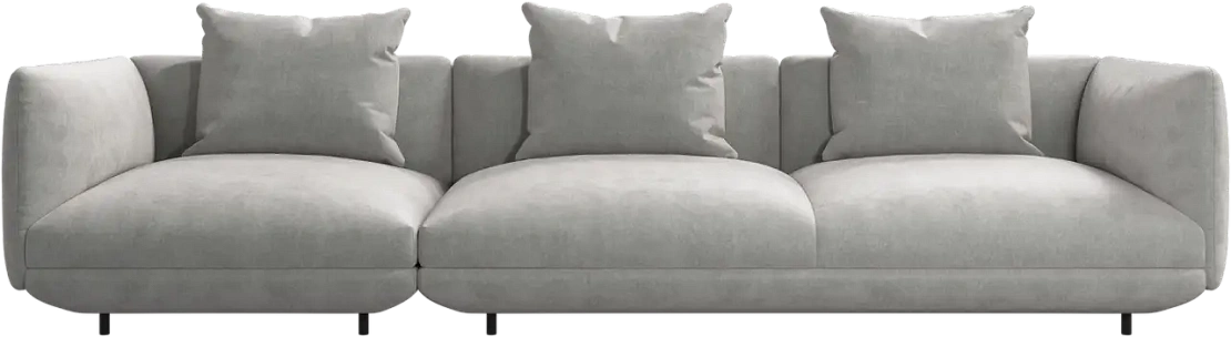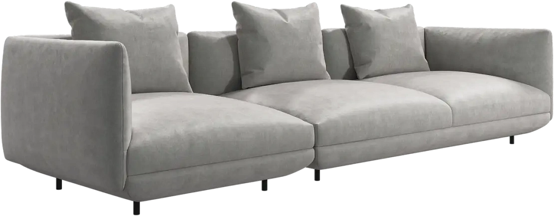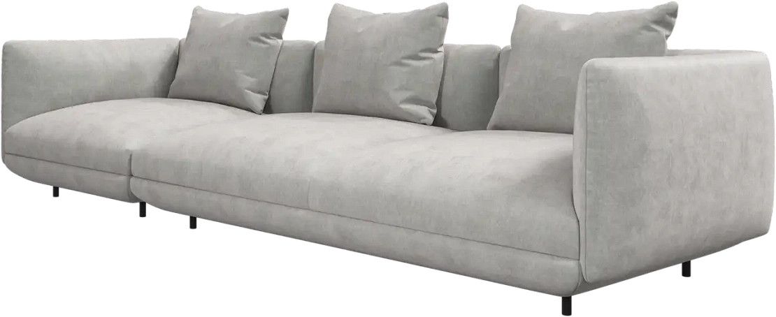 Диван Salamanca отличается щедрыми пропорциями и мягкими изгибами. Их подчеркивают тонкие, едва заметные трубчатые ножки черного цвета, создавая низкий 'парящий' силуэт.