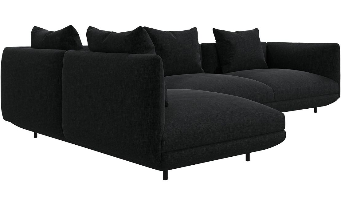 Диван Salamanca отличается щедрыми пропорциями и мягкими изгибами. Их подчеркивают тонкие, едва заметные трубчатые ножки черного цвета, создавая низкий 'парящий' силуэт.