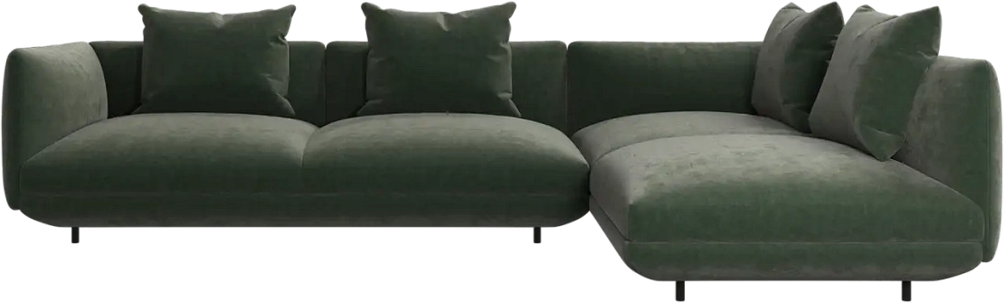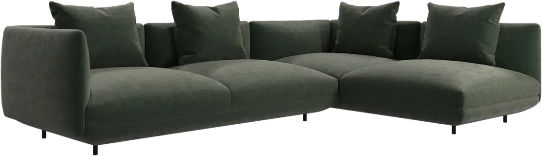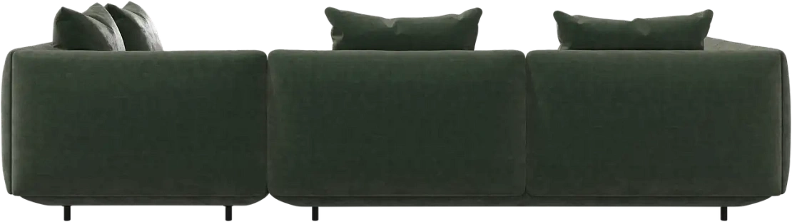 Диван Salamanca отличается щедрыми пропорциями и мягкими изгибами. Их подчеркивают тонкие, едва заметные трубчатые ножки черного цвета, создавая низкий 'парящий' силуэт.