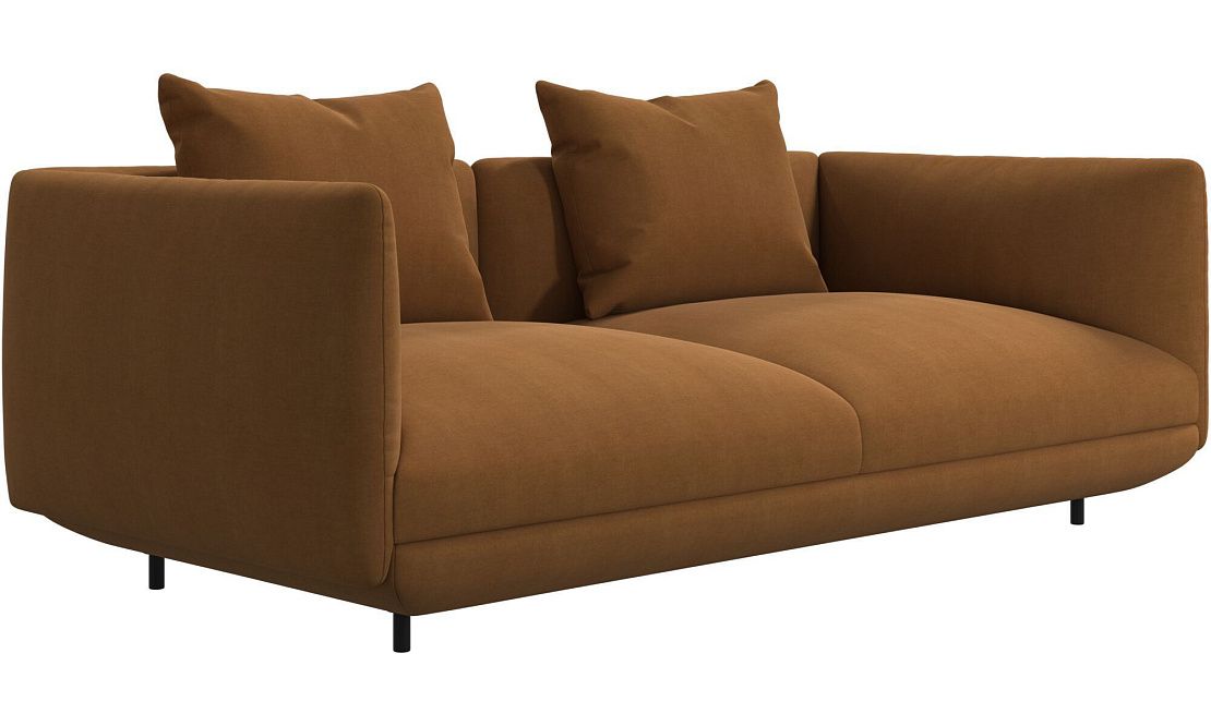 Диван Salamanca отличается щедрыми пропорциями и мягкими изгибами. Их подчеркивают тонкие, едва заметные трубчатые ножки черного цвета, создавая низкий 'парящий' силуэт.