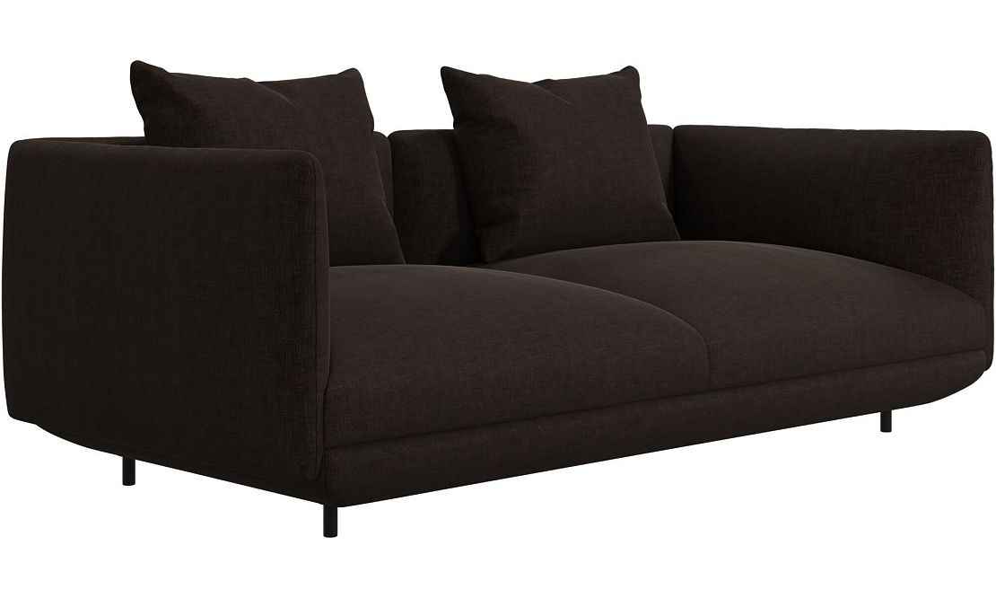 Диван Salamanca отличается щедрыми пропорциями и мягкими изгибами. Их подчеркивают тонкие, едва заметные трубчатые ножки черного цвета, создавая низкий 'парящий' силуэт.