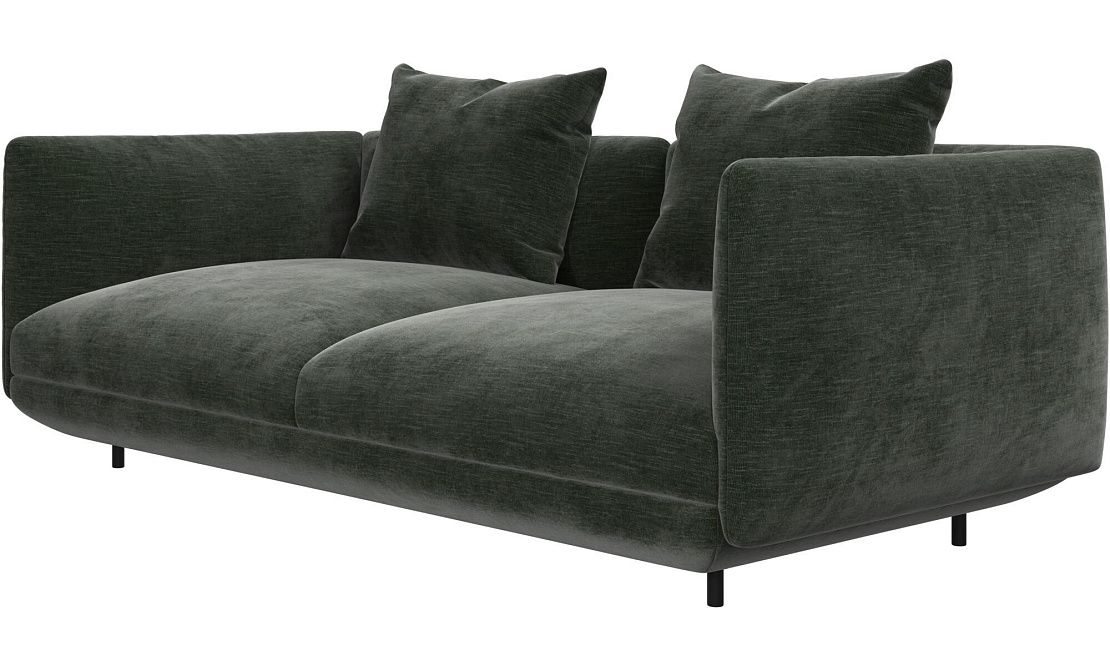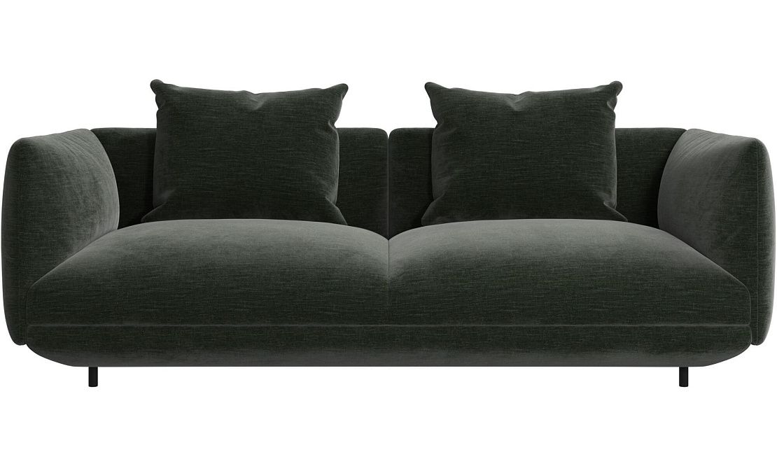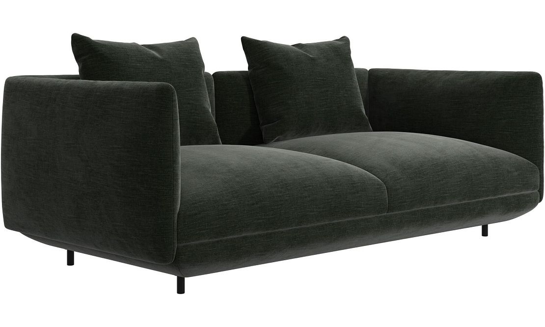 Диван Salamanca отличается щедрыми пропорциями и мягкими изгибами. Их подчеркивают тонкие, едва заметные трубчатые ножки черного цвета, создавая низкий 'парящий' силуэт.