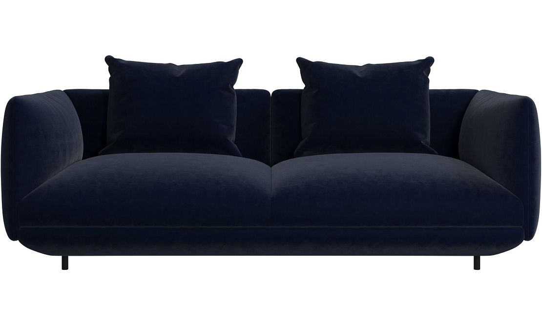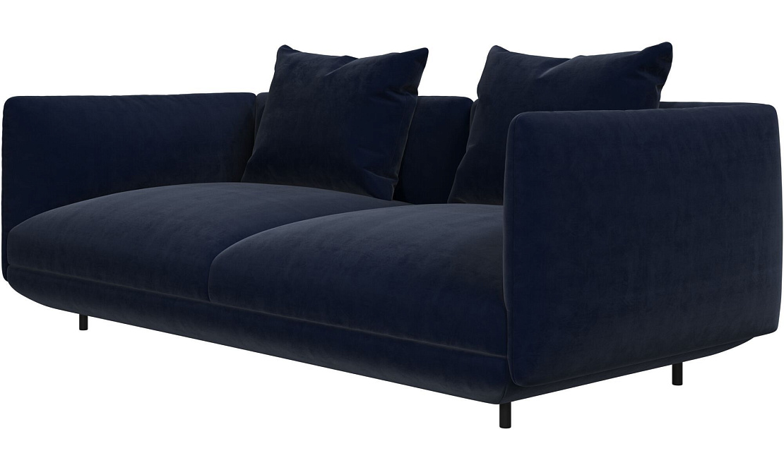 Диван Salamanca отличается щедрыми пропорциями и мягкими изгибами. Их подчеркивают тонкие, едва заметные трубчатые ножки черного цвета, создавая низкий 'парящий' силуэт.