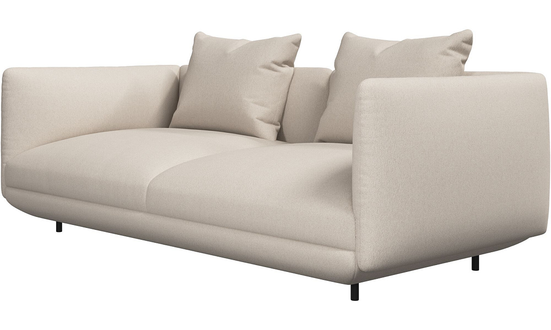 Диван Salamanca отличается щедрыми пропорциями и мягкими изгибами. Их подчеркивают тонкие, едва заметные трубчатые ножки черного цвета, создавая низкий 'парящий' силуэт.