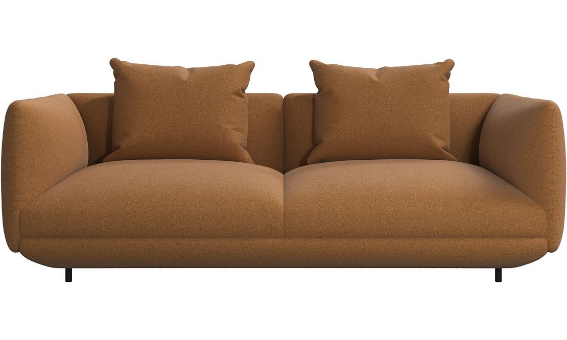 Диван Salamanca отличается щедрыми пропорциями и мягкими изгибами. Их подчеркивают тонкие, едва заметные трубчатые ножки черного цвета, создавая низкий 'парящий' силуэт.