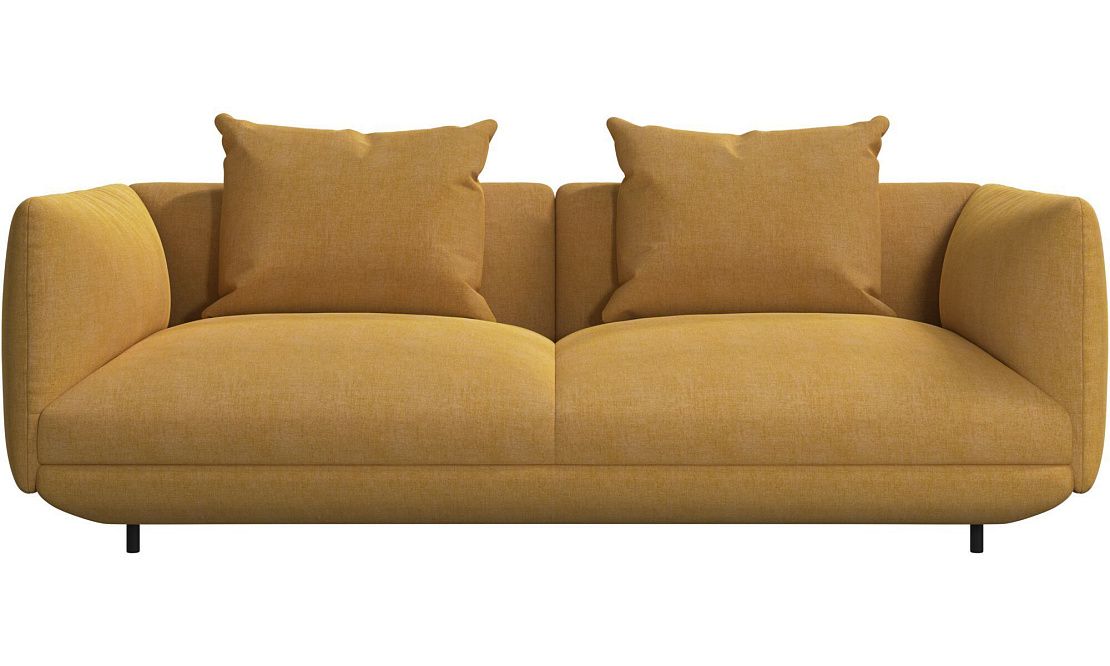 Диван Salamanca отличается щедрыми пропорциями и мягкими изгибами. Их подчеркивают тонкие, едва заметные трубчатые ножки черного цвета, создавая низкий 'парящий' силуэт.