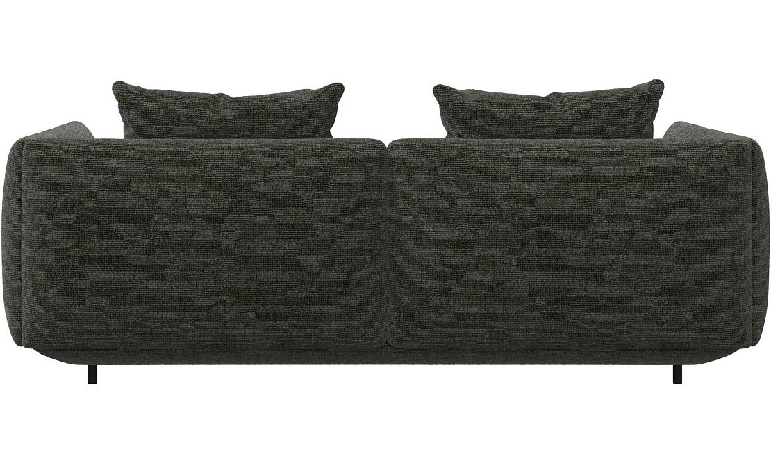 Диван Salamanca отличается щедрыми пропорциями и мягкими изгибами. Их подчеркивают тонкие, едва заметные трубчатые ножки черного цвета, создавая низкий 'парящий' силуэт.