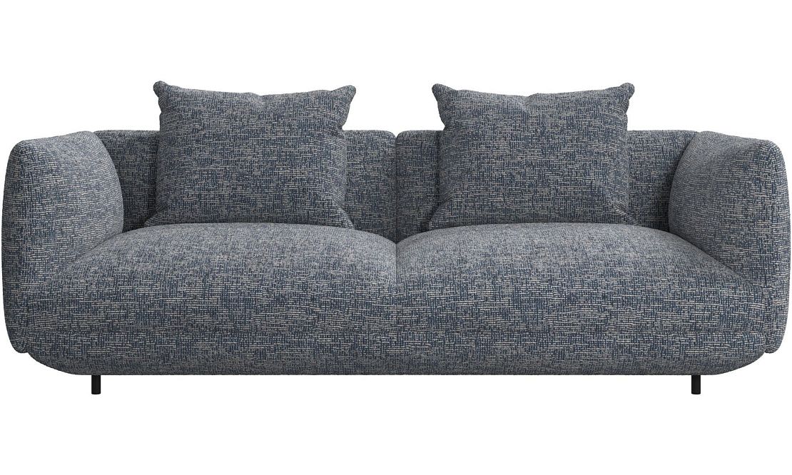Диван Salamanca отличается щедрыми пропорциями и мягкими изгибами. Их подчеркивают тонкие, едва заметные трубчатые ножки черного цвета, создавая низкий 'парящий' силуэт.