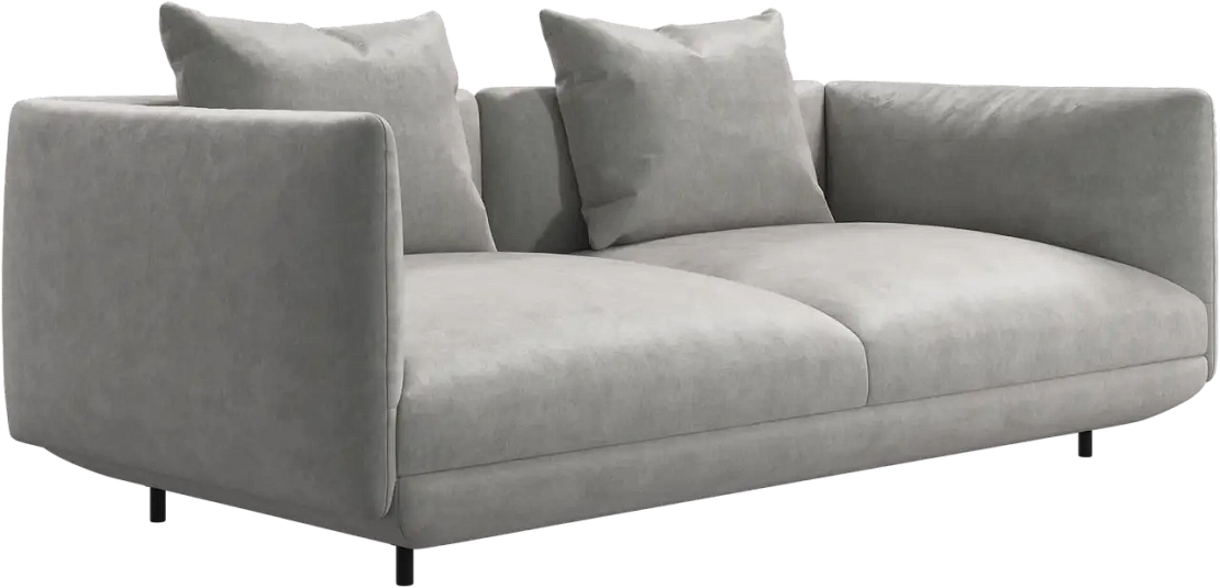 Диван Salamanca отличается щедрыми пропорциями и мягкими изгибами. Их подчеркивают тонкие, едва заметные трубчатые ножки черного цвета, создавая низкий 'парящий' силуэт.