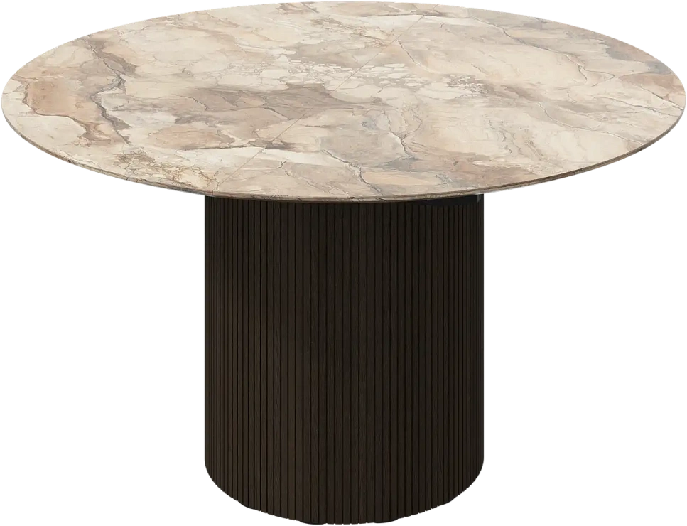 Стол Santiago доступен в широком ассортименте цветов. Он дополнен прочной керамической столешницей, подчеркивающей естественность дизайна.