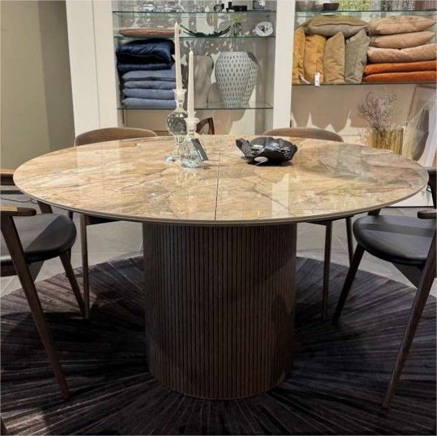 Столы из линейки Santiago отличаются изогнутой овальной или круглой столешницей, создающей современный органичный силуэт.