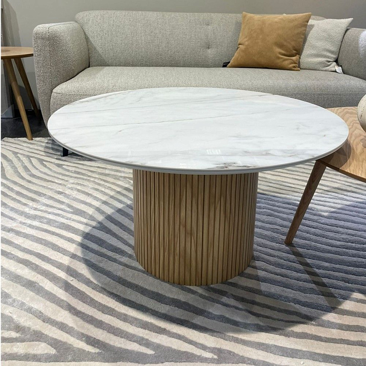Журнальный столик Santiago имеет овальное или круглое основание в форме колонны и поверхность со скошенными краями. Он будет эффектно смотреться в любом пространстве.