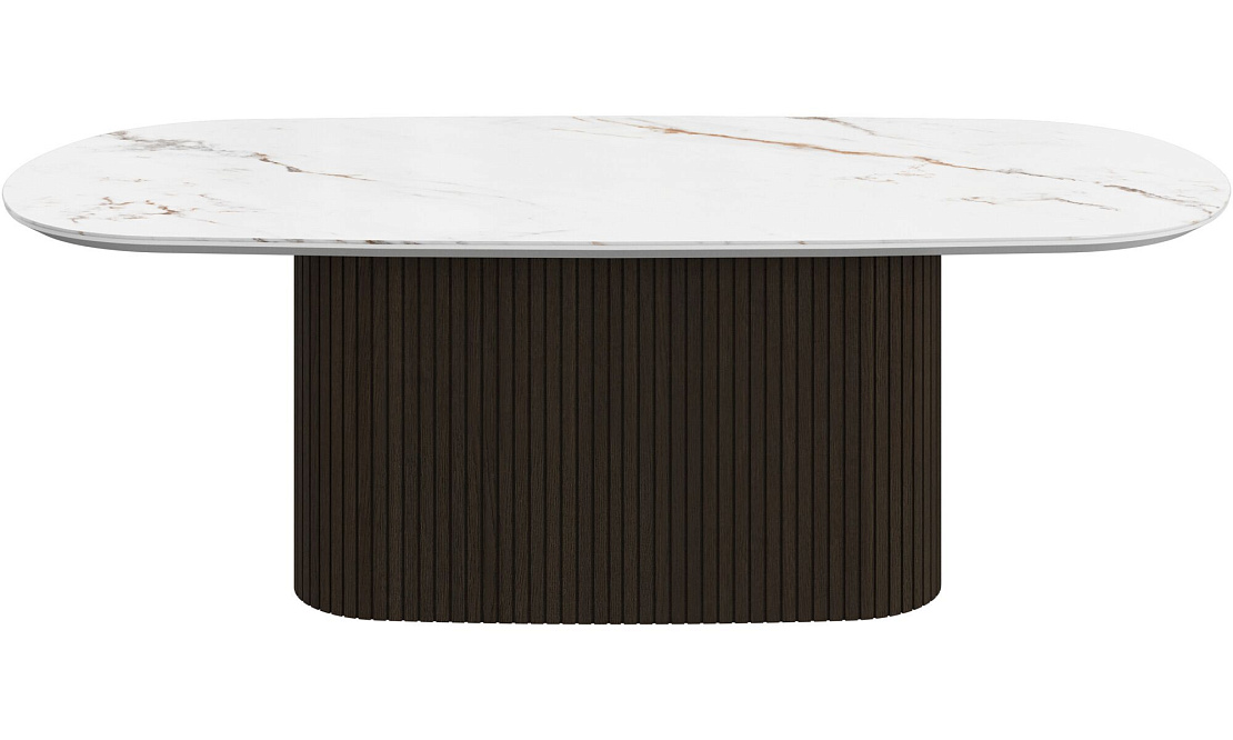 Столы из линейки Santiago отличаются изогнутой овальной или круглой столешницей, создающей современный органичный силуэт.