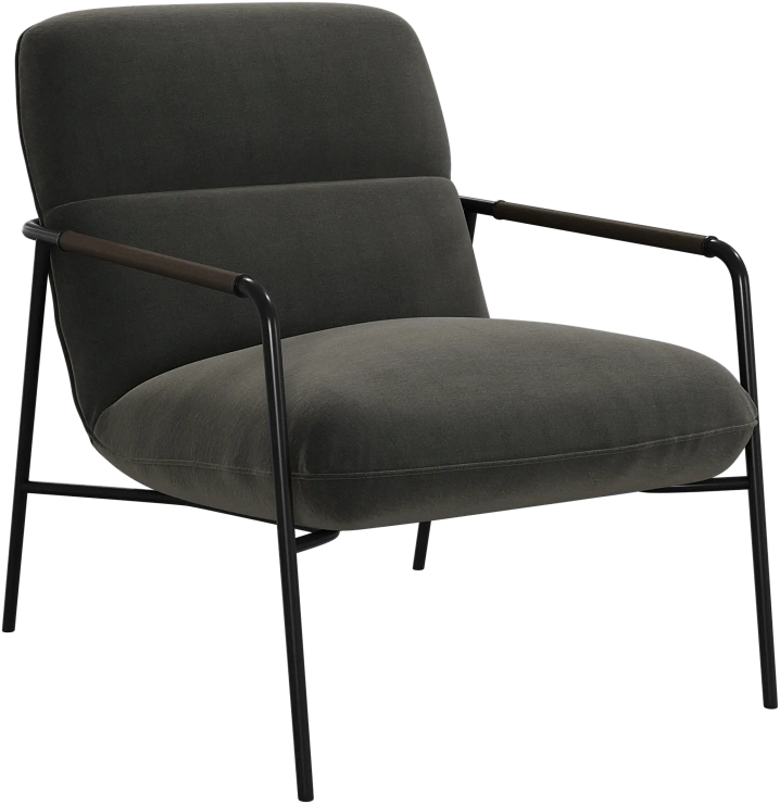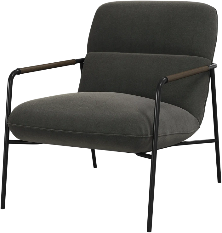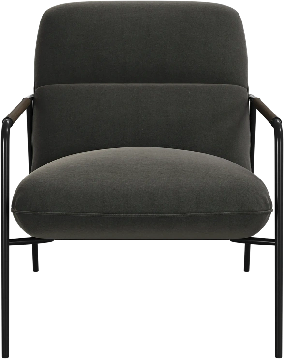 Матовая чёрная рама и дубовые подлокотники подчёркивают лаконичный дизайн и добавляют ему тёплый, натуральный акцент.