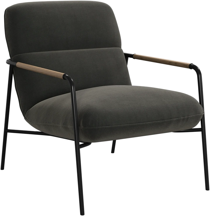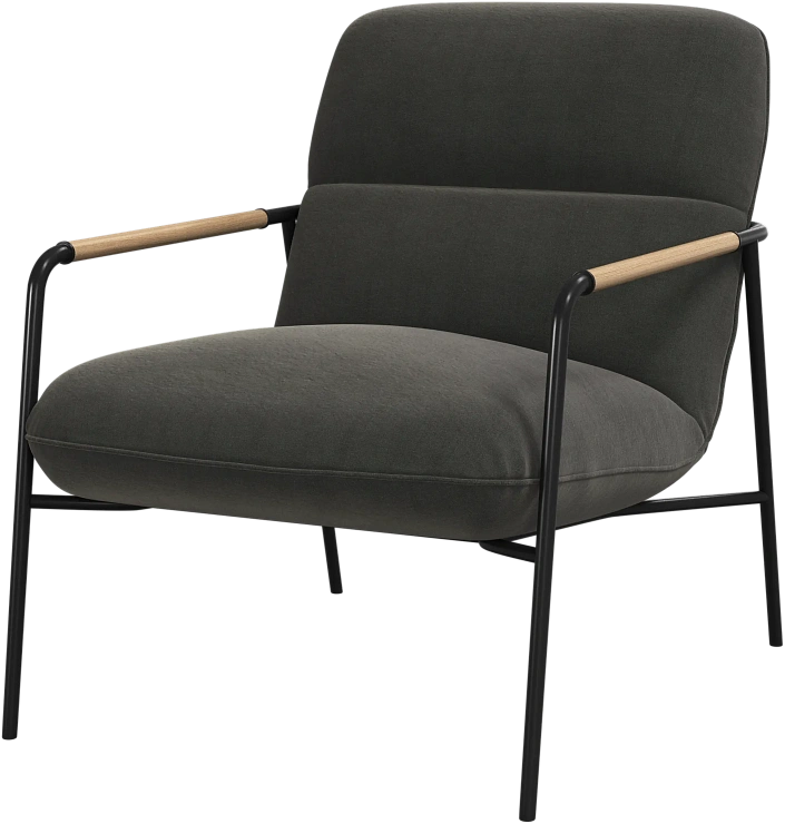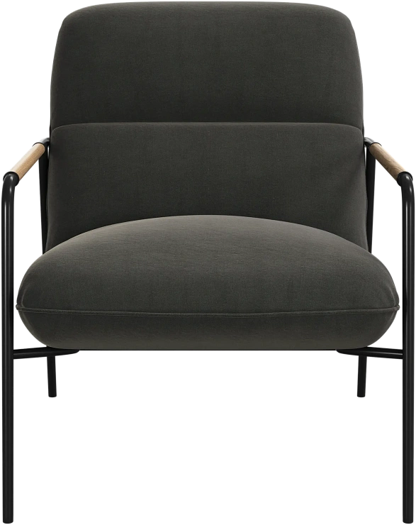 Матовая чёрная рама и дубовые подлокотники подчёркивают лаконичный дизайн и добавляют ему тёплый, натуральный акцент.