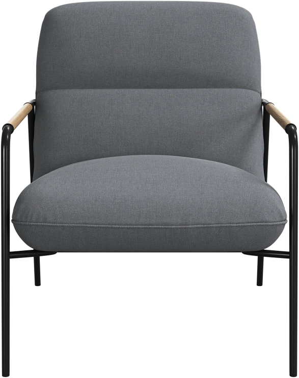 Матовая чёрная рама и дубовые подлокотники подчёркивают лаконичный дизайн и добавляют ему тёплый, натуральный акцент.