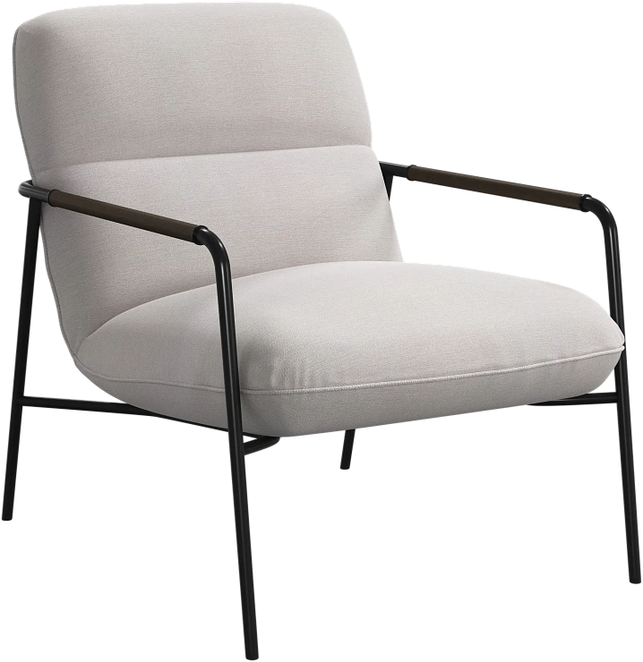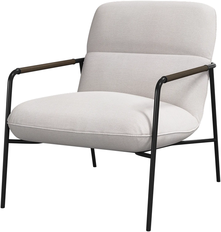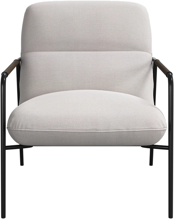 Матовая чёрная рама и дубовые подлокотники подчёркивают лаконичный дизайн и добавляют ему тёплый, натуральный акцент.
