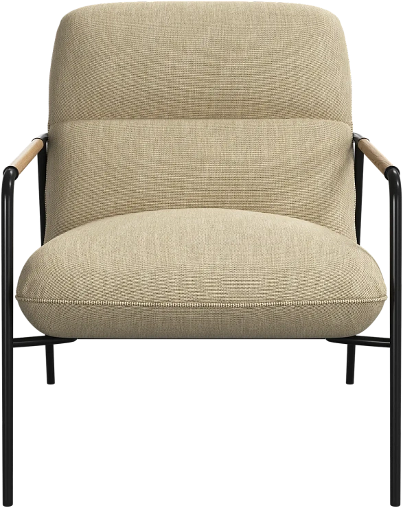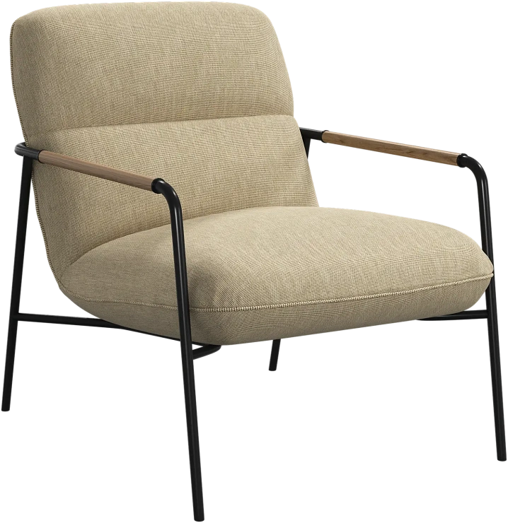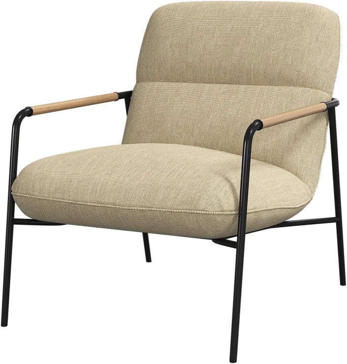 Матовая чёрная рама и дубовые подлокотники подчёркивают лаконичный дизайн и добавляют ему тёплый, натуральный акцент.