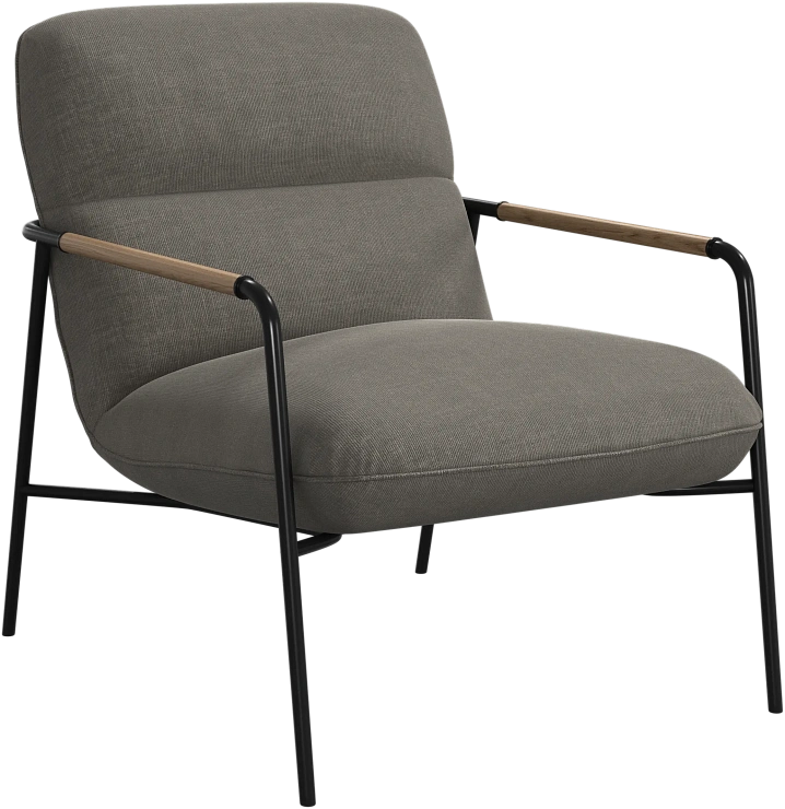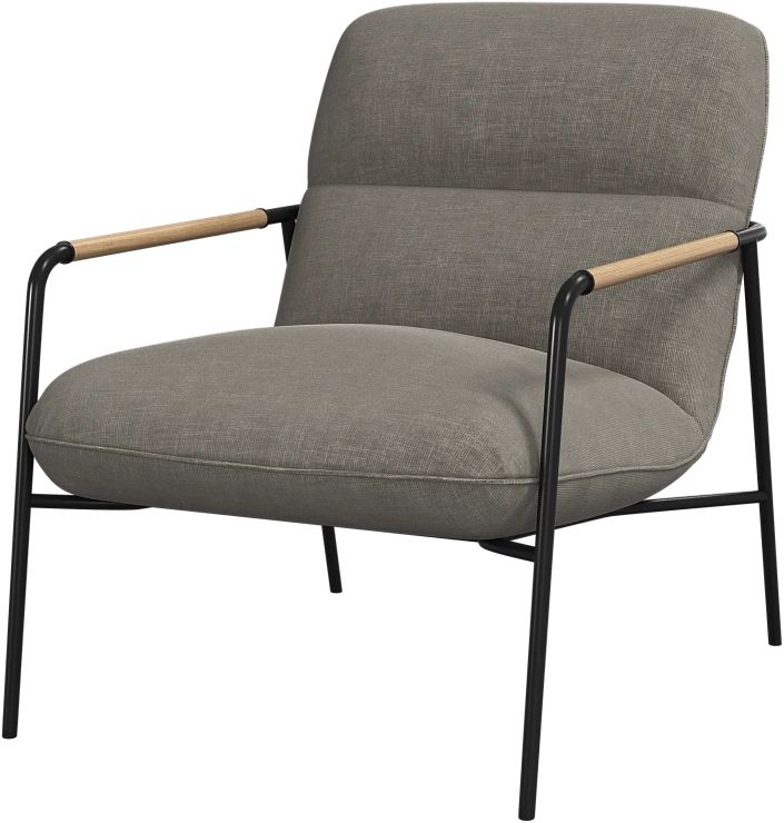 Матовая чёрная рама и дубовые подлокотники подчёркивают лаконичный дизайн и добавляют ему тёплый, натуральный акцент.