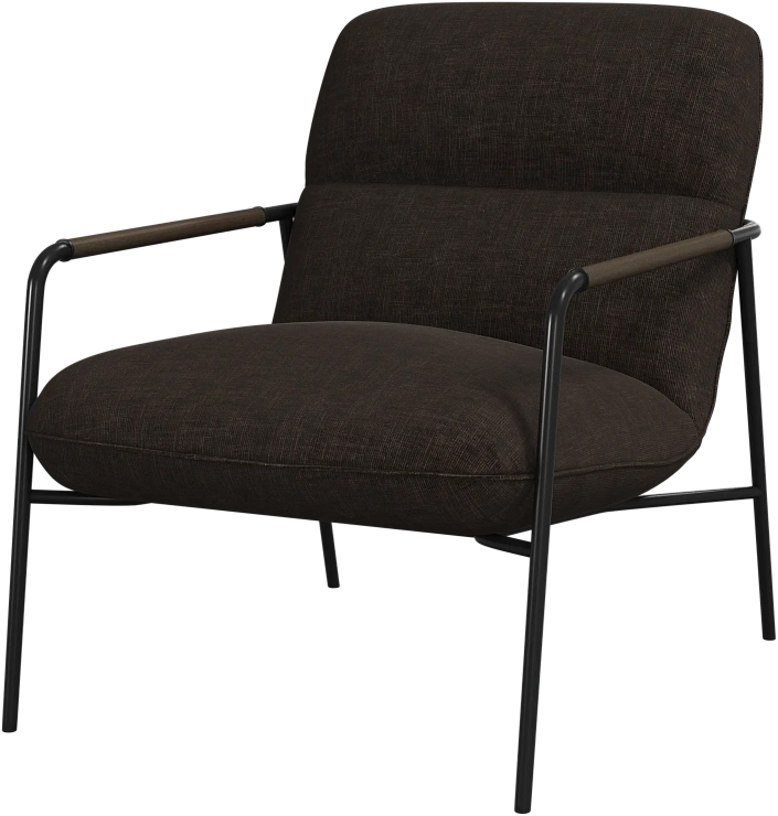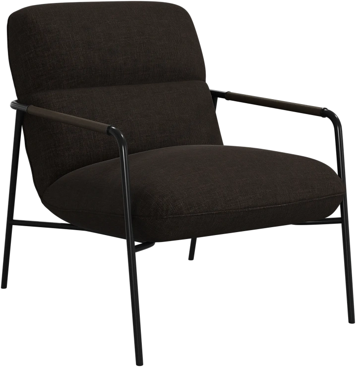 Матовая чёрная рама и дубовые подлокотники подчёркивают лаконичный дизайн и добавляют ему тёплый, натуральный акцент.