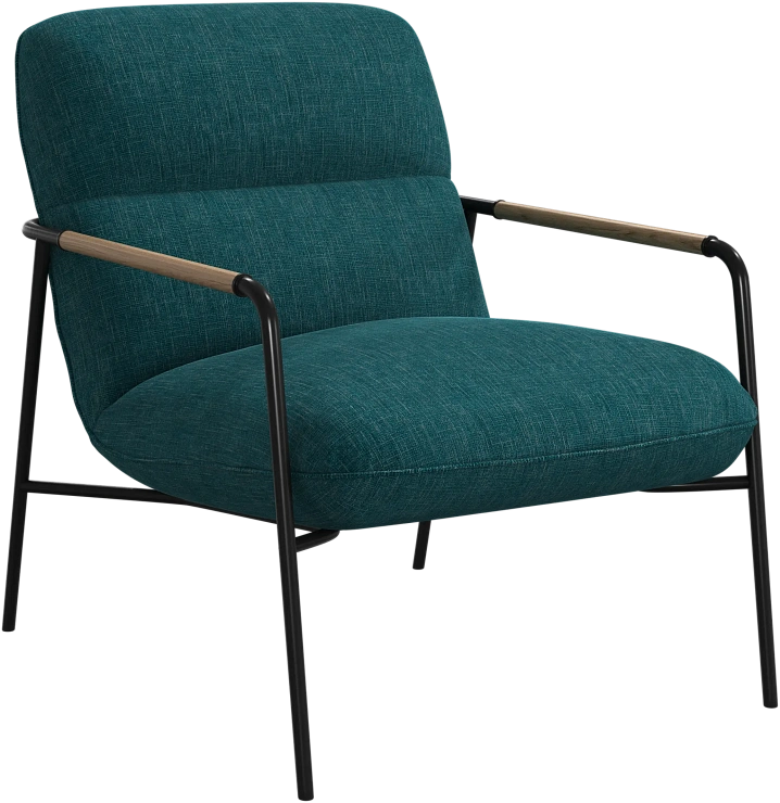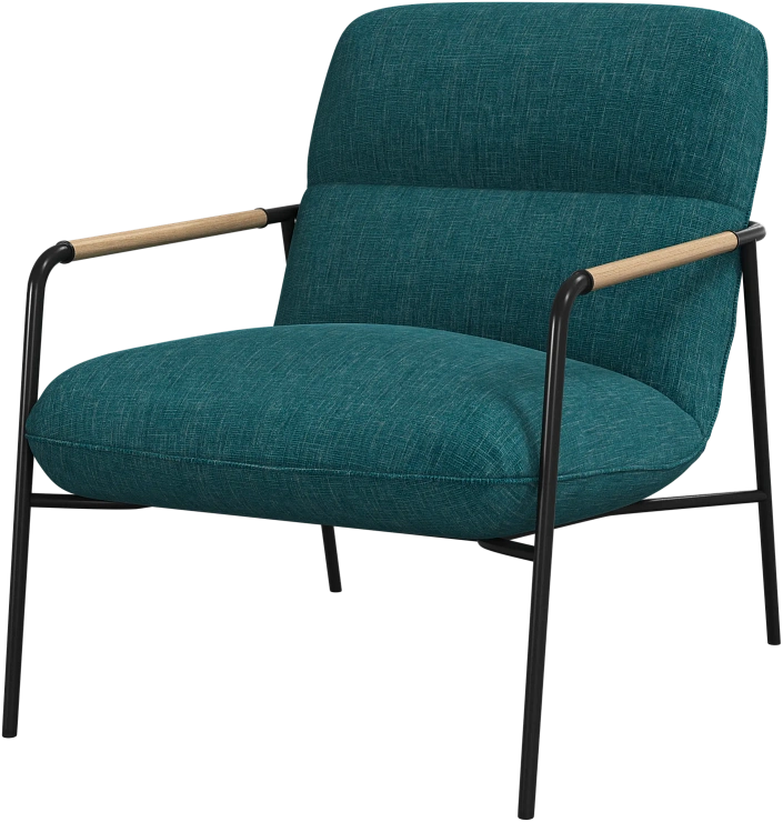 Матовая чёрная рама и дубовые подлокотники подчёркивают лаконичный дизайн и добавляют ему тёплый, натуральный акцент.