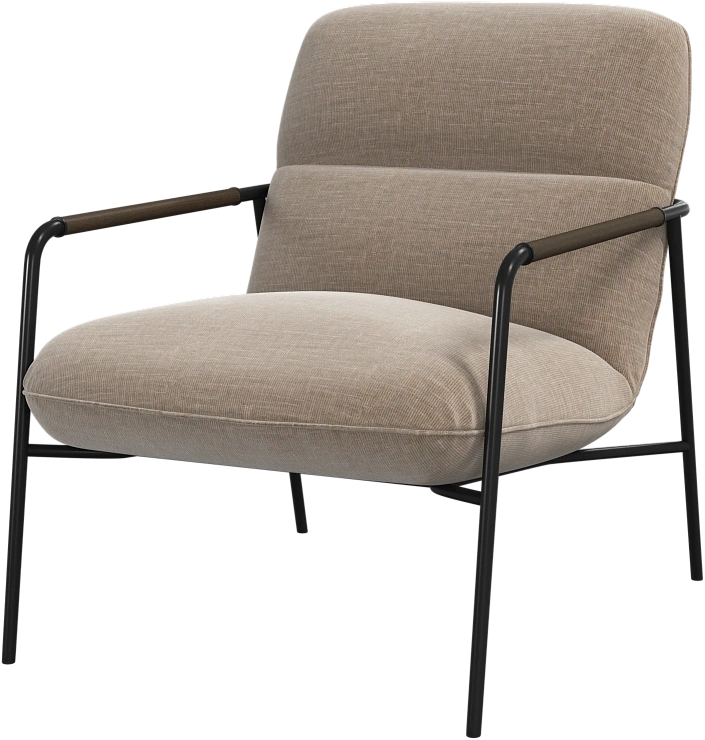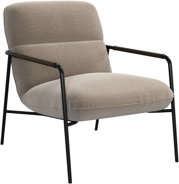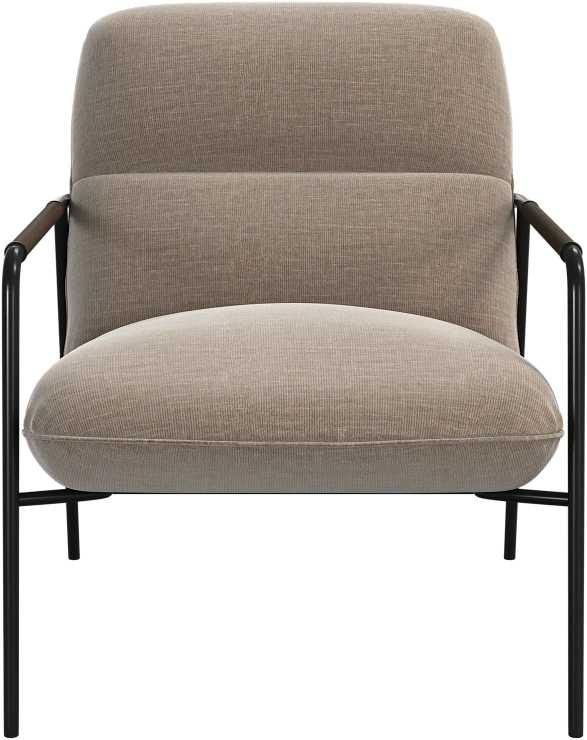 Матовая чёрная рама и дубовые подлокотники подчёркивают лаконичный дизайн и добавляют ему тёплый, натуральный акцент.