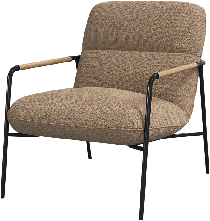 Матовая чёрная рама и дубовые подлокотники подчёркивают лаконичный дизайн и добавляют ему тёплый, натуральный акцент.