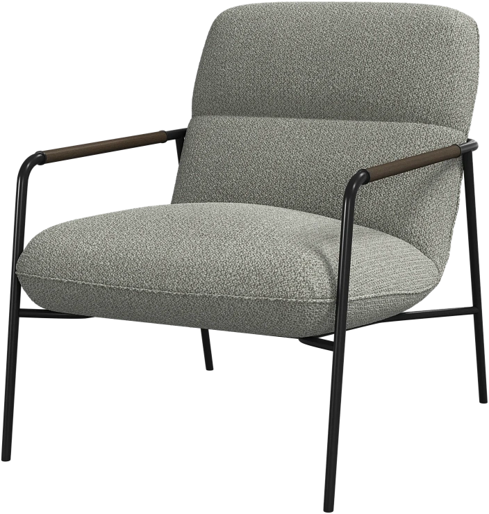 Матовая чёрная рама и дубовые подлокотники подчёркивают лаконичный дизайн и добавляют ему тёплый, натуральный акцент.