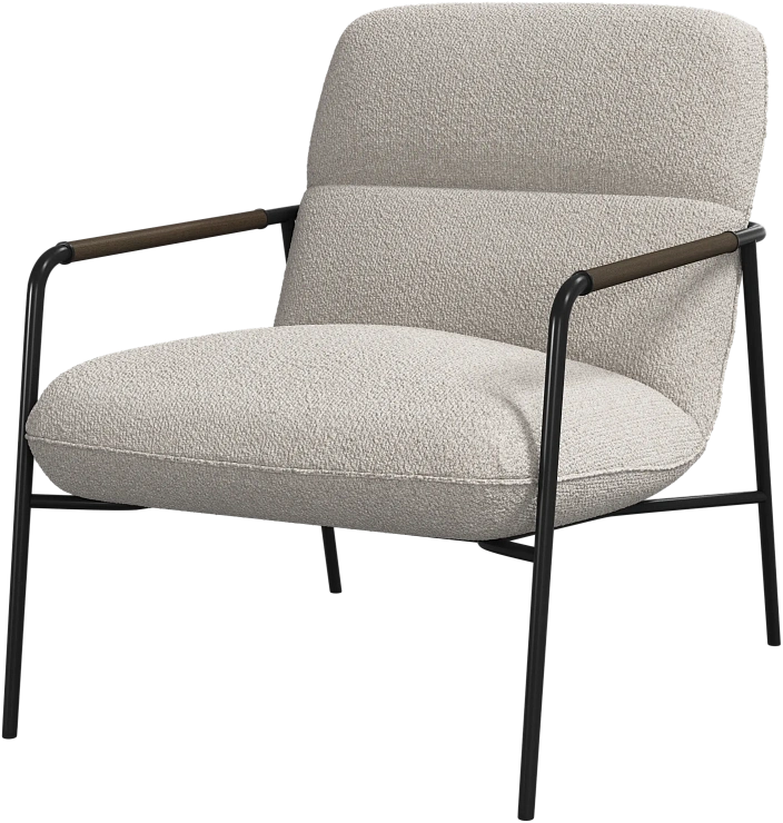 Матовая чёрная рама и дубовые подлокотники подчёркивают лаконичный дизайн и добавляют ему тёплый, натуральный акцент.