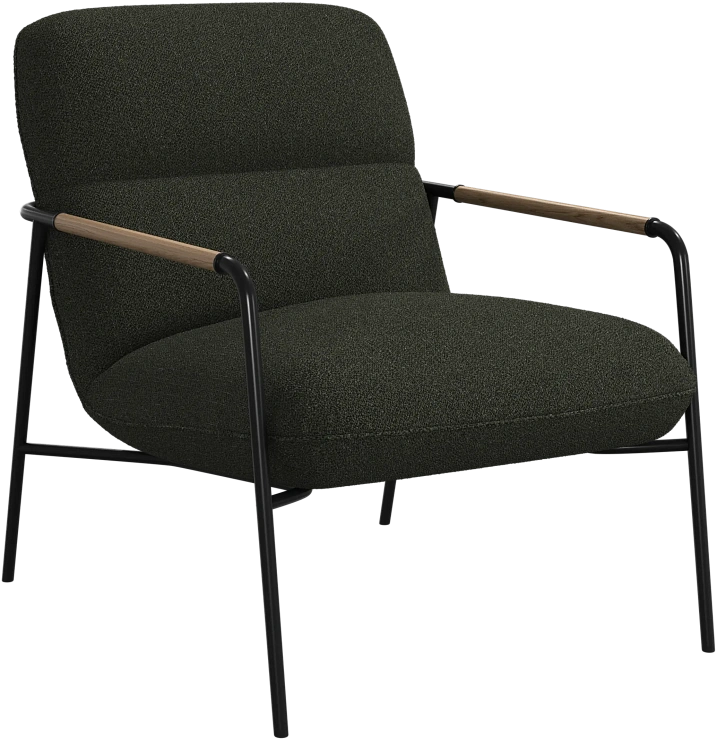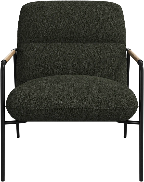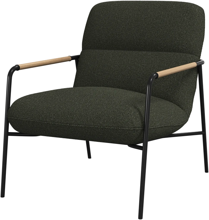 Матовая чёрная рама и дубовые подлокотники подчёркивают лаконичный дизайн и добавляют ему тёплый, натуральный акцент.